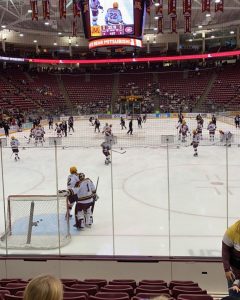 Zwischendurch hat unsere Spanisch Lehrerin und ihre Familie uns Austauschschüler eingeladen, mit ihnen zu einem Ice Hockey Spiel der Gophers, also der Collegemannschaft aus Minneapolis von der University of Minnesota, zu gehen. Es hat sehr viel Spaß gemacht und ich persönlich fand es auch spannender als Football, wahrscheinlich weil ich die Regeln ein bisschen besser verstehe ☺.